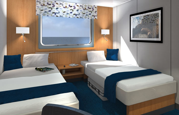 Santa Cruz II’s Swedish-designed cabins reflect the latest in cruise trends. Comfortable spaces and large picture windows illuminate the interior spaces and allow guests to take in the views, offering elegant relaxation areas after a day of active exploring. Guests will enjoy 64% more cabin space than on the vessel’s predecessor. Explorer Cabins are located on the Expedition, Horizon, and Panorama Decks.Beds: 2 large twin beds convert to double (105 cm x 91 cm) x 2Bedding: Superior quality bed linen in all cabins. 2 pillows, one hypoallergenic and one with memory foam. Sheets are 60% cotton and 40% polyester of the best quality and duvet as a cover. Windows: 1 (138 cm x 90 cm)Balconies: NoneCabin Furnishings: 2 night desks, 1 chair, 1 corner deskPrivate Bathroom: Yes, with showerBathroom Amenities: Biodegradable shampoo & soap, hairdryer, mirror, facial tissue, towels. Under request at reception we have available for guests: sewing kit, shower cap and vanity kits.Cabin Amenities: Ceiling light; under-the-bed closet (space for suitcases); telephone; iron (upon request); pen & memo pad; expedition map; sports bottle; extra blanket